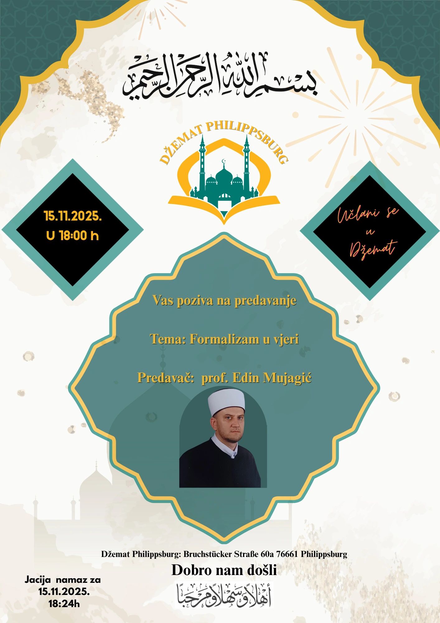 U našem džematu će biti upriličeno predavanje na temu: Formalizam u vjeri